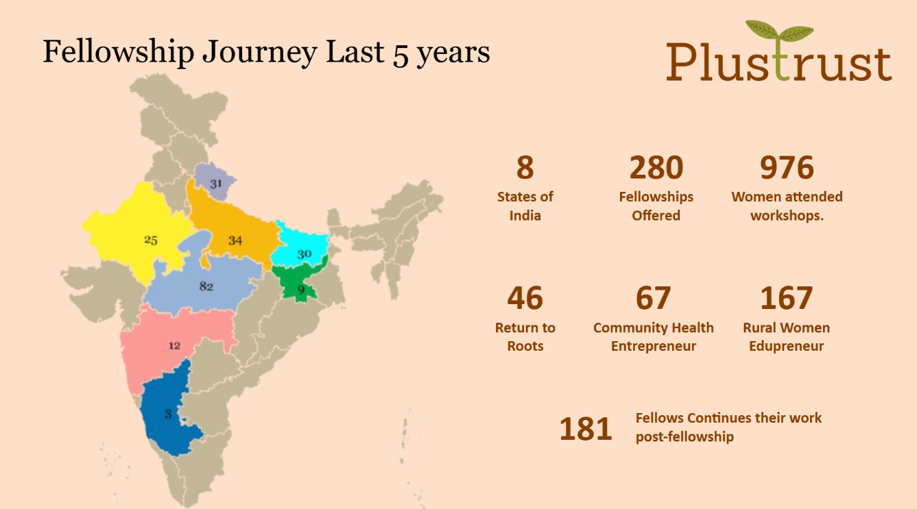 Since the past 14 years, Plustrust has offered 298 fellowship opportunities across 14 states in India.